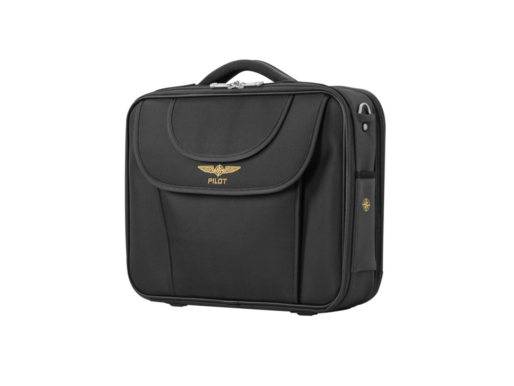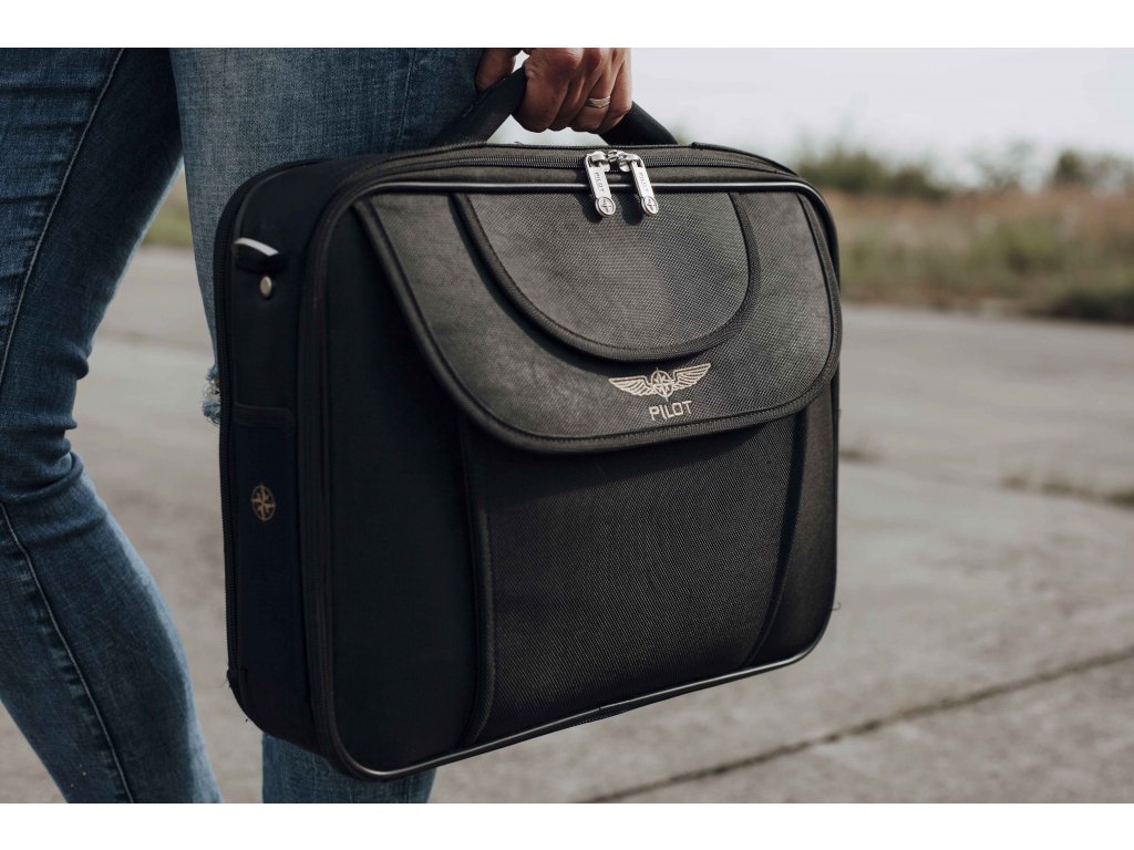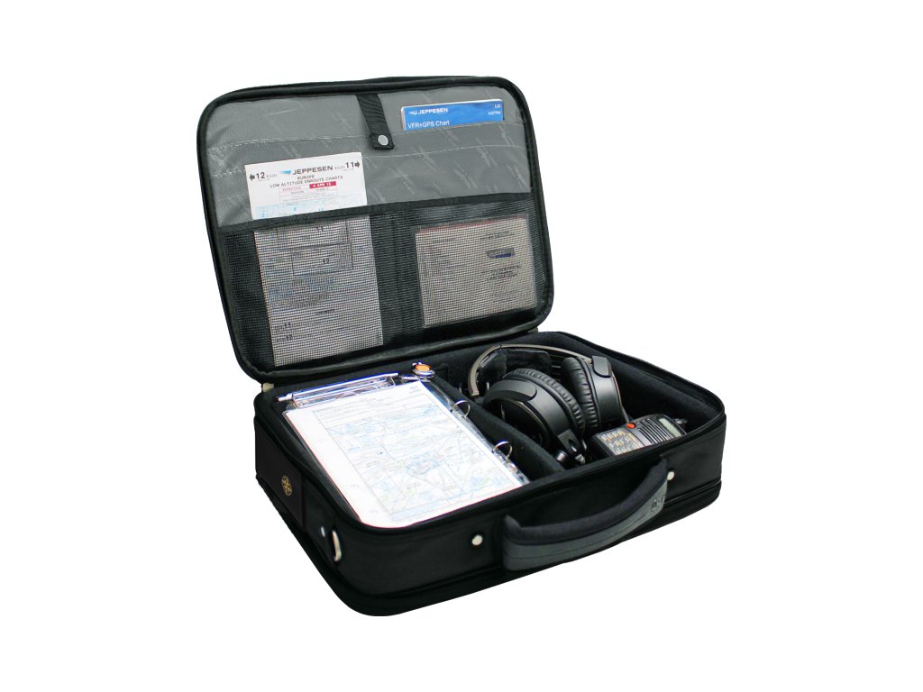 Na zadní straně jsou dokumentové oddíly pro mapy, letové plány, grafy a popruh na vozík.
